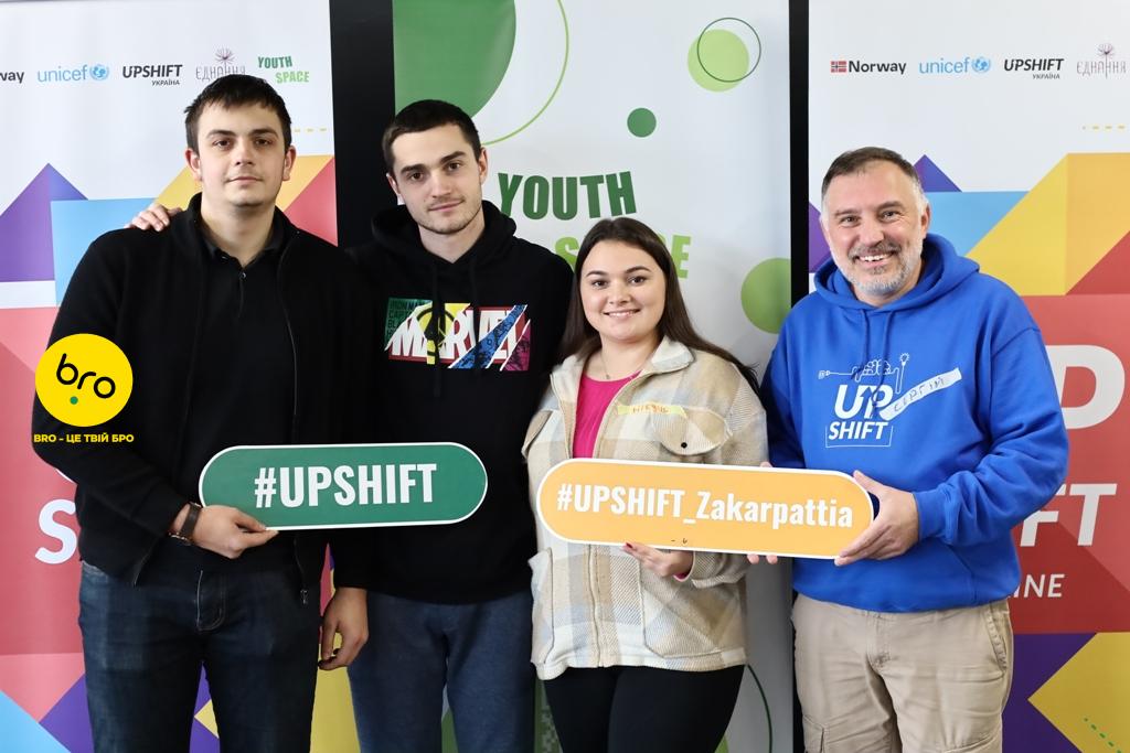 Програма UPSHIFT у Закарпатській області реалізується ГО “Простір молоді” в рамках програми «Розвиток потенціалу молоді у західних областях України», що імплементується ІСАР Єднання, за фінансової підтримки Дитячого фонду ООН (ЮНІСЕФ) і Уряду Японії.